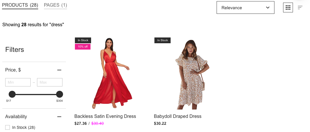 | Price range filter | ||