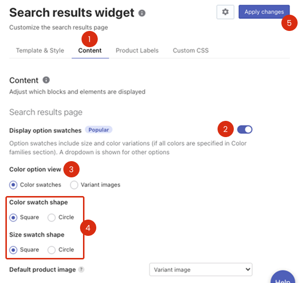 - Optionally, change the color swatch (variant image) shape, or the size swatch shape.
